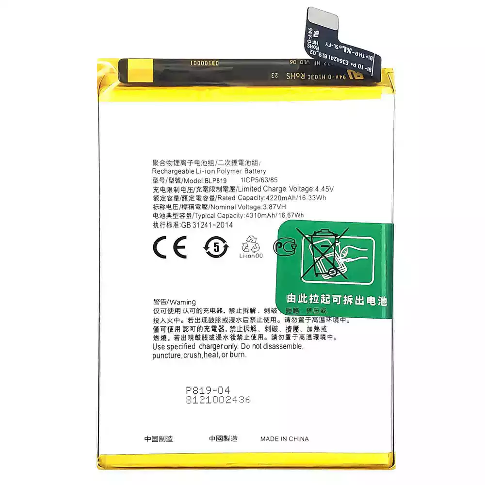 Pin BLP819 Thích hợp cho OPPO Reno 5 4G /Reno 6 4G /F19 Pro Plus /Reno 5 Lite /Reno 5Z