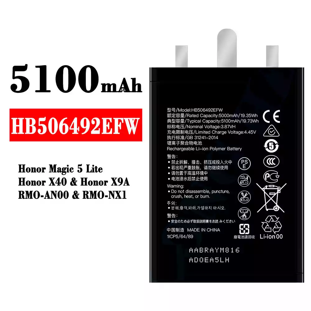 Pin HB506492EFW Thích hợp cho HUAWEI Honor Magic 5 Lite / Honor X40 / Honor X9A / RMO-AN00 / RMO-NX1