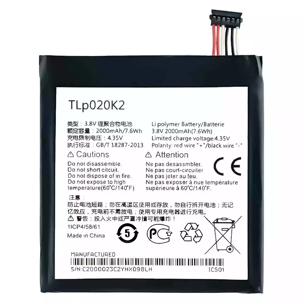 Pin TLP020K2 Thích hợp cho Alcatel Ido1 3 4.7/6039Y/6039H/6039K